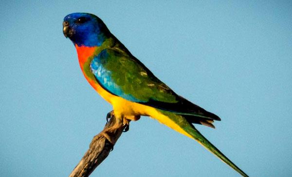 鮮紅胸鸚鵡:別名光輝鸚鵡_紅脅鸚鵡,為鸚形目、鸚鵡科、橙腹鸚鵡屬鳥(niǎo)類,原產(chǎn)于大洋洲澳大利亞西南部和東南部,主要棲息于干燥的馬利植被區(qū)、穆拉加金合歡屬灌木叢林區(qū)、開(kāi)闊的茂密林區(qū)、充滿桉樹(shù)和金合歡屬植物的草原地區(qū)。1841年命名,無(wú)亞種。