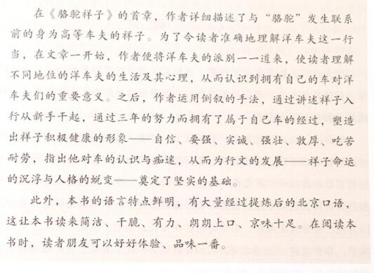 6祥子沒有輕易忘記自己的車被搶的事。一想起這事,他心中就覺得發(fā)怵。他恨不得馬上就能買上一輛新車。為此,他更加拼命地掙錢,甚至不惜去搶別人的生意。祥子在楊先生家拉包月,受了氣,只待了四天就離開了楊家。