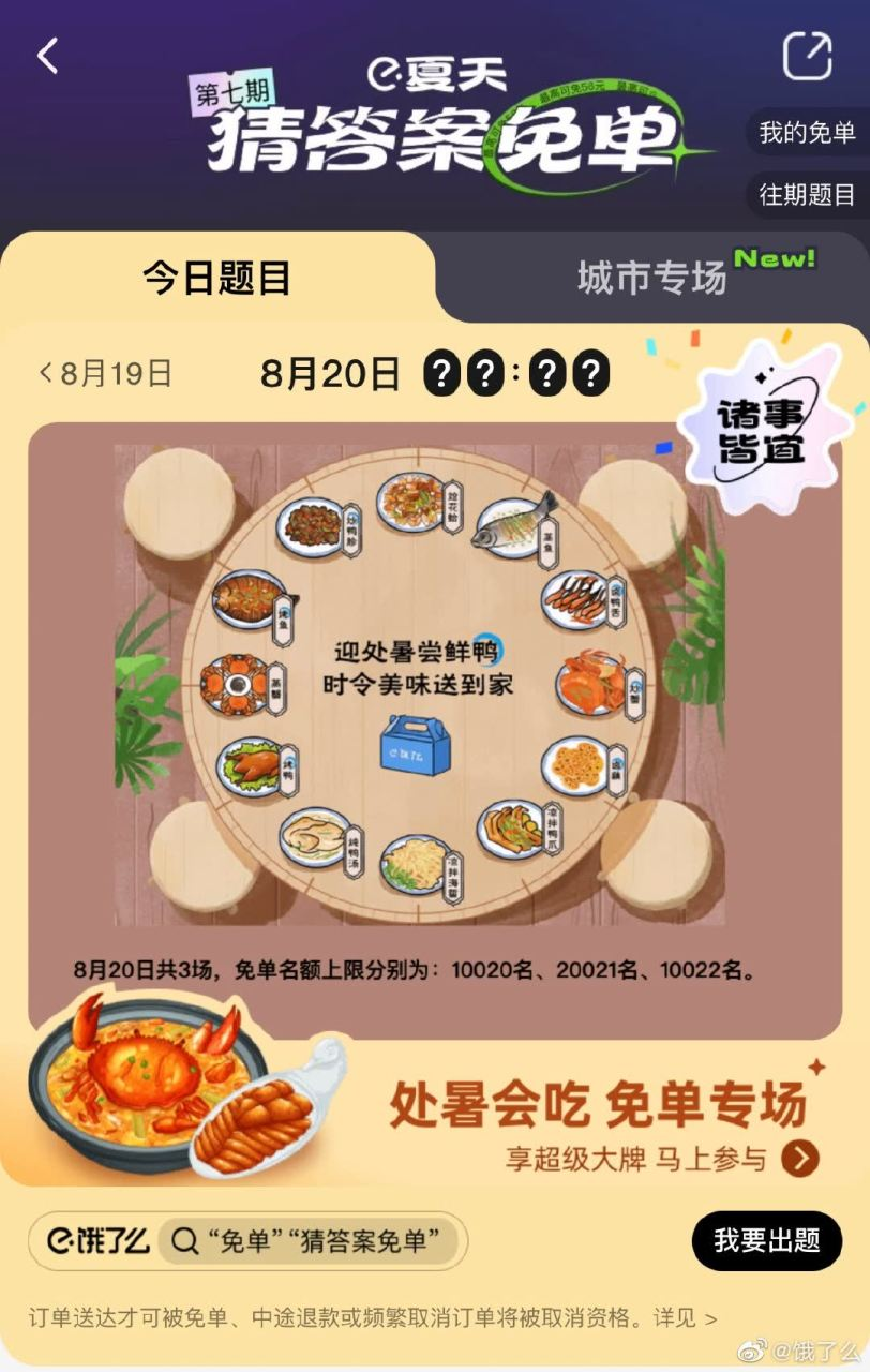 “連日來的高溫讓今年特別期待處暑的到來,處暑將至,宜吃老鴨海鮮嘗鮮出暑迎秋爽!評論區(qū)蹲課代表,順便聊聊在你的家鄉(xiāng)處暑吃什么?”?餓了么借勢處暑節(jié)氣提出“猜答案免單”免單活動,與讀者積極互動,取得了良好的宣傳效果。