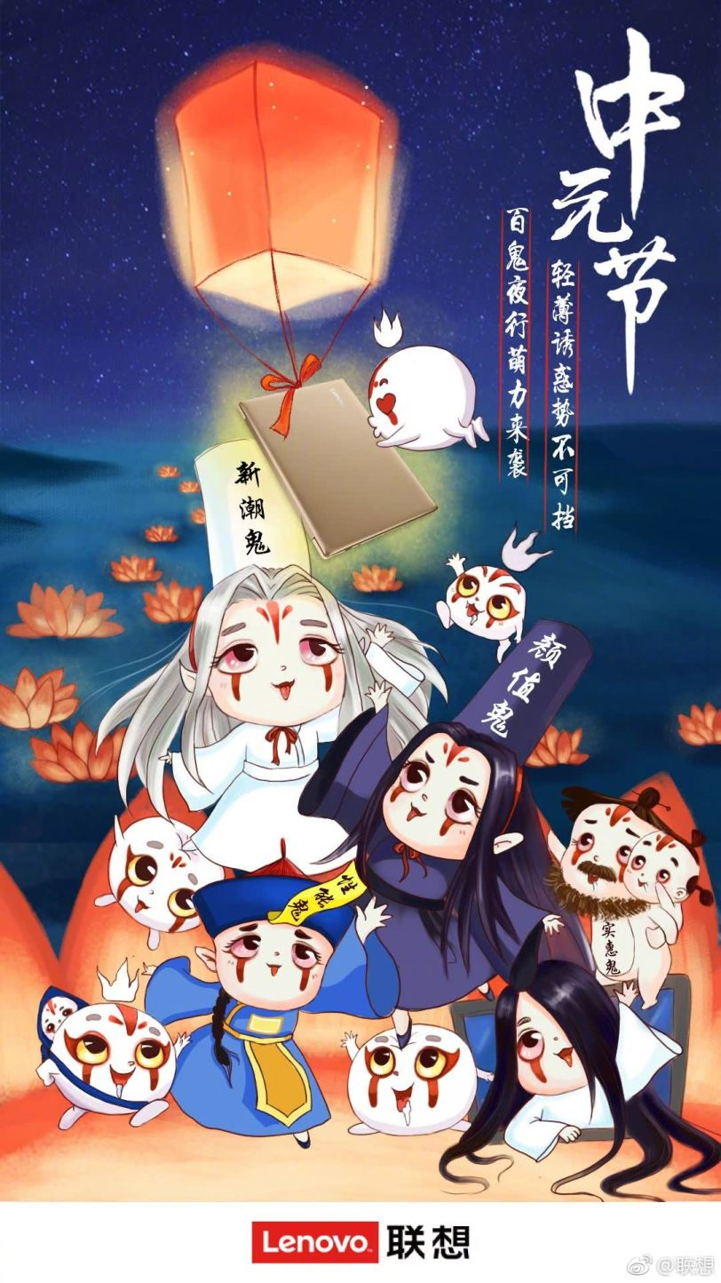 聯(lián)想將中元節(jié)與傳說百鬼夜行聯(lián)系在一起制作海報(bào),通過Q版的人物增加對讀者的吸引力,配文:“中元節(jié),賣個萌!百鬼夜行萌力來襲,輕薄誘惑勢不可擋?!?/span>
