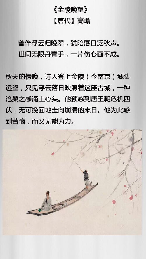明朝酒醒大江流,滿載一船離恨向衡州。 梳洗罷,獨(dú)倚望江樓.過盡千帆皆不是,斜暉脈脈水悠悠,腸斷白蕷洲.江頭風(fēng)怒,朝來波浪翻屋.舊恨春江流不斷,新恨云山千疊江頭未是風(fēng)波惡,別有人間行路難何處望神州?滿眼風(fēng)光北固樓。